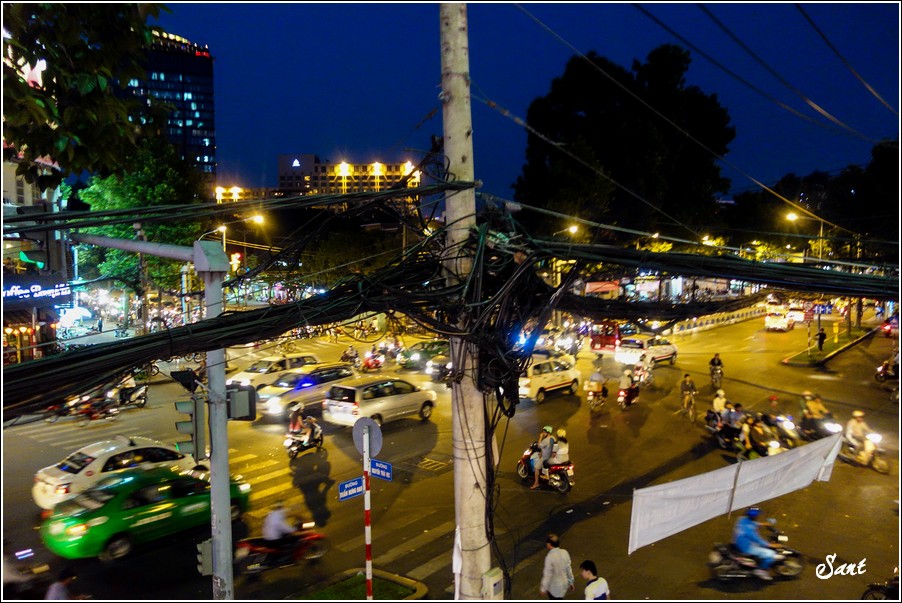 這裡雖然不算胡志明市主要大街,坐在二樓,欣賞橫衝直撞的車流也算是越南之旅的趣事之一。