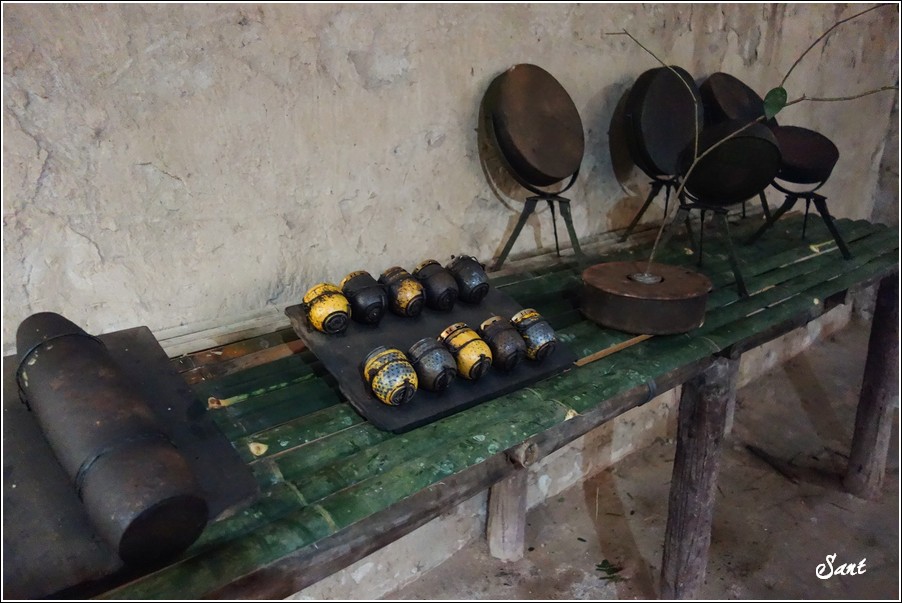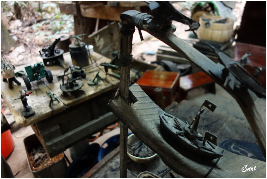 這裡展示越戰期間,躲在地道裡頭的越共們拾獲美軍的彈殼以及坦克車橡膠履帶所製作的一些小手工紀念品。