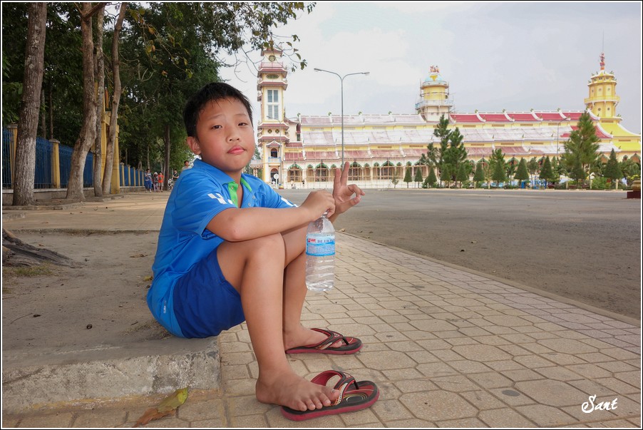 真的會氣死狼啦,這是啥地方,人有三急,小孩子尿急可忍不住的,哪來這麼多規矩,老狼受不鳥他們如此對待,就當作聽不懂越南話,懶得理管制人員機哩呱啦的蠻南鴃語,走我們自己的路,穿過寺廟到左邊的出口後,叫小狼趕緊穿鞋去後院找廁所。