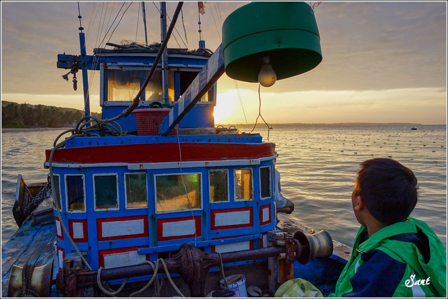 越南臨南海有漫長的海岸線,越南漁工外銷世界各地,一隻狼旅遊越南二次沒看過越南海邊有釣魚郎,越南的魚應該比較笨、比較貪吃上鉤,趁這回南越之旅,在美奈請飯店安排包了一艘漁船玩半天海釣,帶小狼出海準備大顯身手,看看能不能釣上美人魚晚上抱抱。