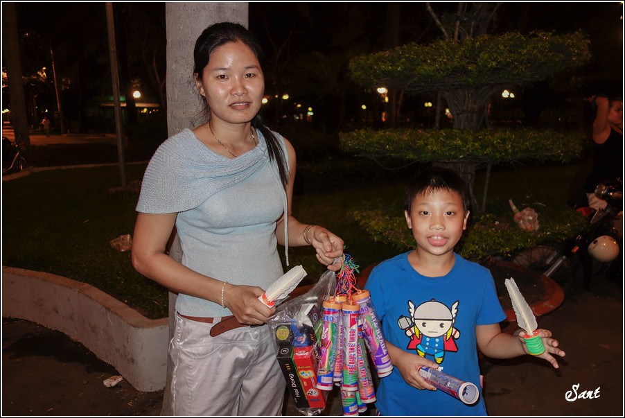 小狼也想買一個試看看,一個毽子賣2美元,這些提著籃子到處叫賣的毽子一定比較貴,反正也2美元而已,選了一個比較年輕漂亮的越南咩交關一個。
