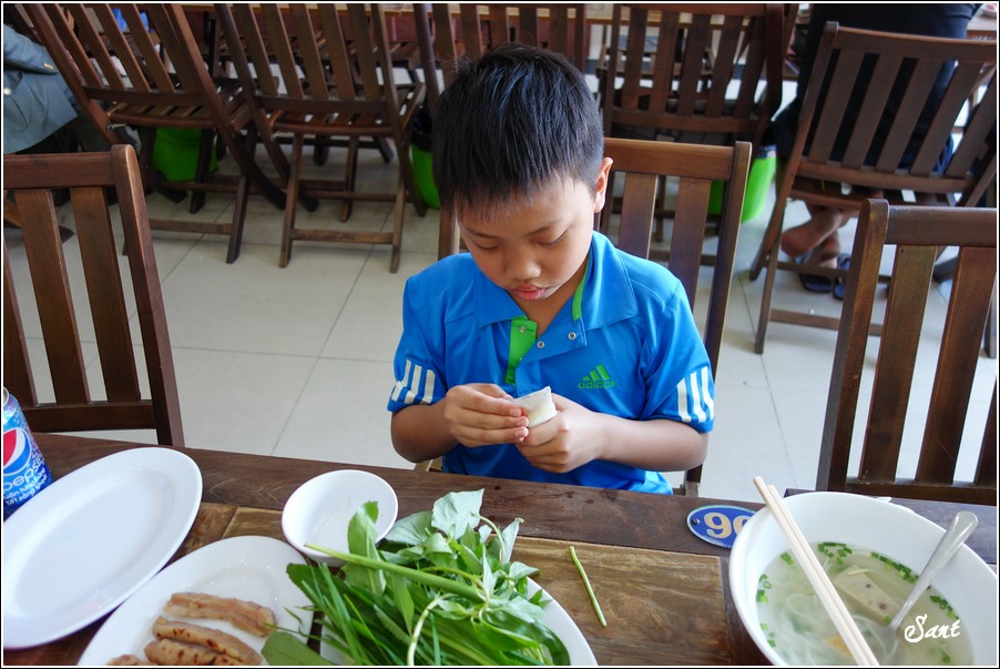 春捲皮薄如紙張,是用米漿製作,將硬梆梆質感的穿捲皮扯一片下來,把魚粄、新鮮蔬菜包起來沾甜味醬,雖然沒有油炸春捲好吃,起碼是芽莊人氣第一名餐廳,嚐嚐就好。