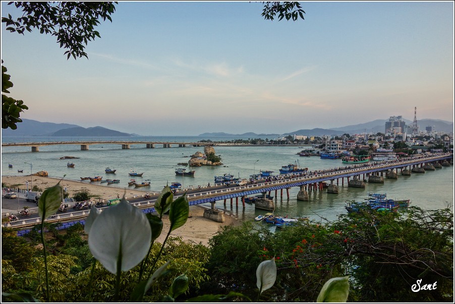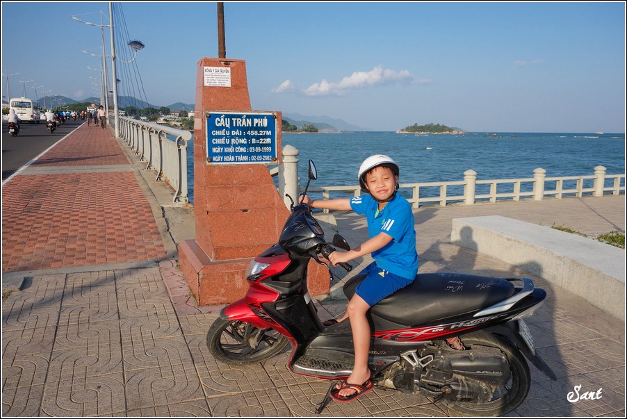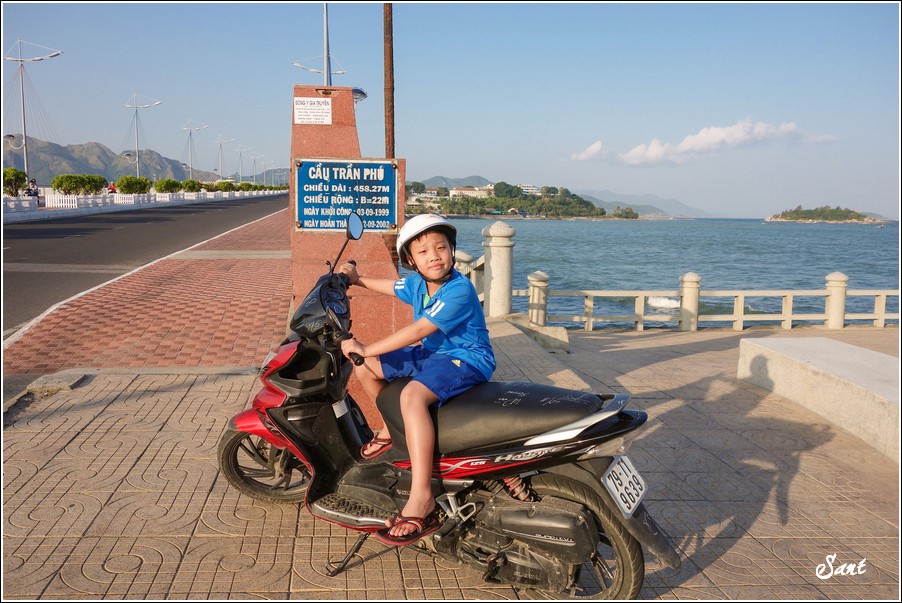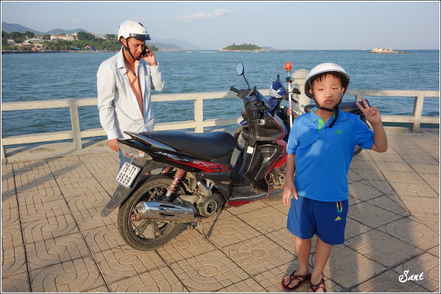 芽莊北邊橋頭這裡的海岸風光漂亮,只是心裡頭還憂慮著摩托車拋錨還得耽誤多少出遊時間。