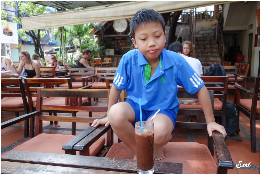 找了幾個河粉小攤鳥無人氣,於是改變尋找目標,選了路口一家最多老外用餐的庭園餐廳用餐。