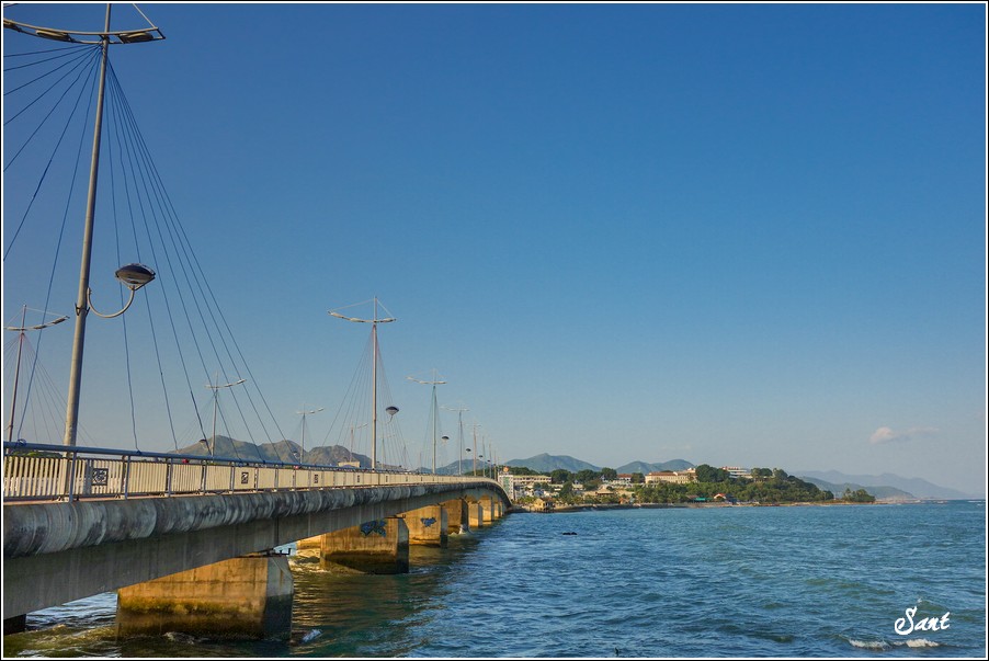 在橋頭停下摩托車幫小狼拍完這張到此一遊紀念照之後蠢事又報到了,這輛摩托車的slow(怠速)太慢,等紅綠燈時如果沒有保持輕微加油狀態就會熄火,只要重新start(啟動)還ok,繼續上路。