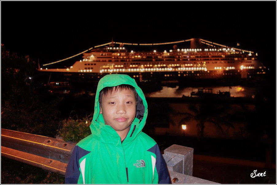 在漆黑中騎了許久,在一個大門處被警衛吹笛子攔下,原來老狼闖進郵輪的專用碼頭。