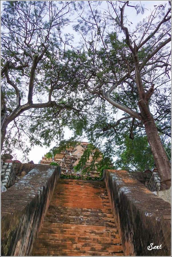 從這裡往上展望天依女神塔有點像墨西哥金字塔的外觀,這道磚造樓梯是早期登上天依女神塔的階梯,已經封閉了。