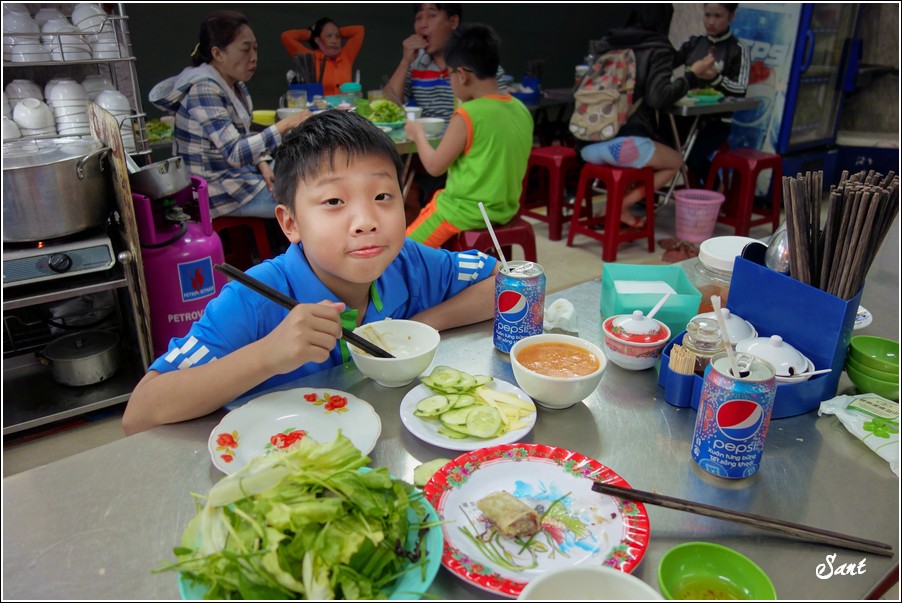 芽莊第二天早上二隻狼直直睏,錯過了早餐時間,在酒店附近尋覓人氣路邊攤河粉當作早午餐。