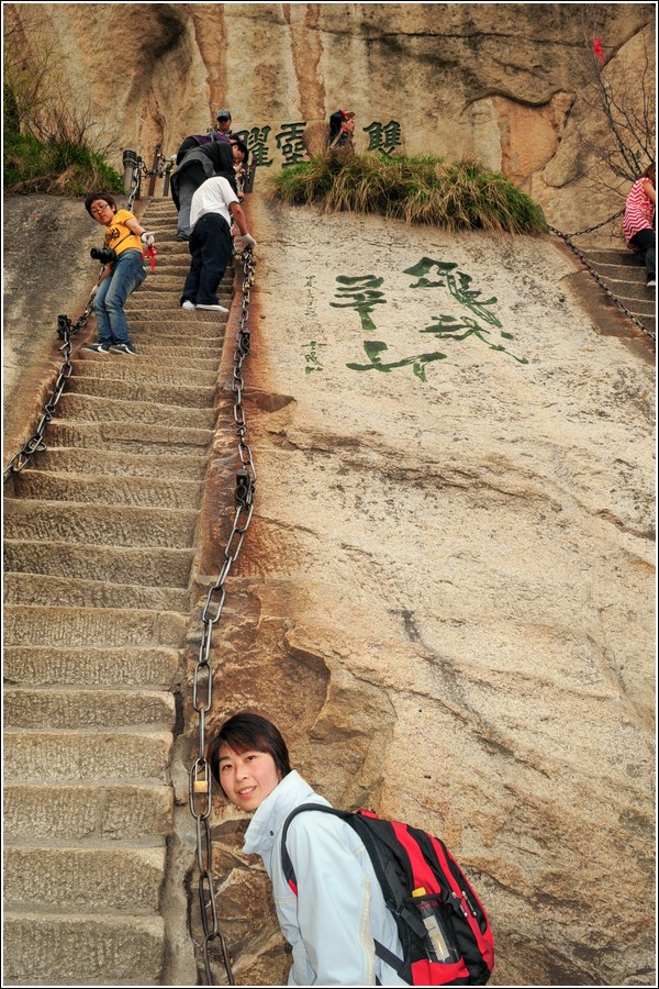對面山壁鐫刻著『五岳華山險居首』,我們還沒看到『險』處呢。
