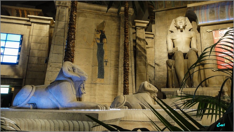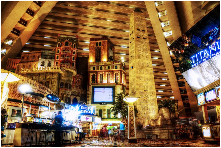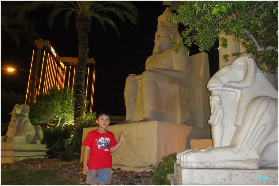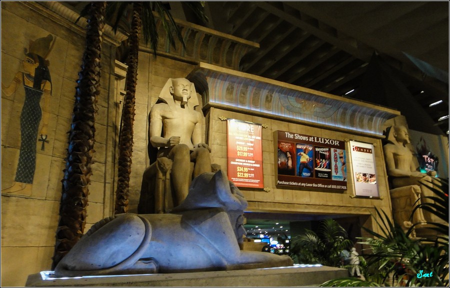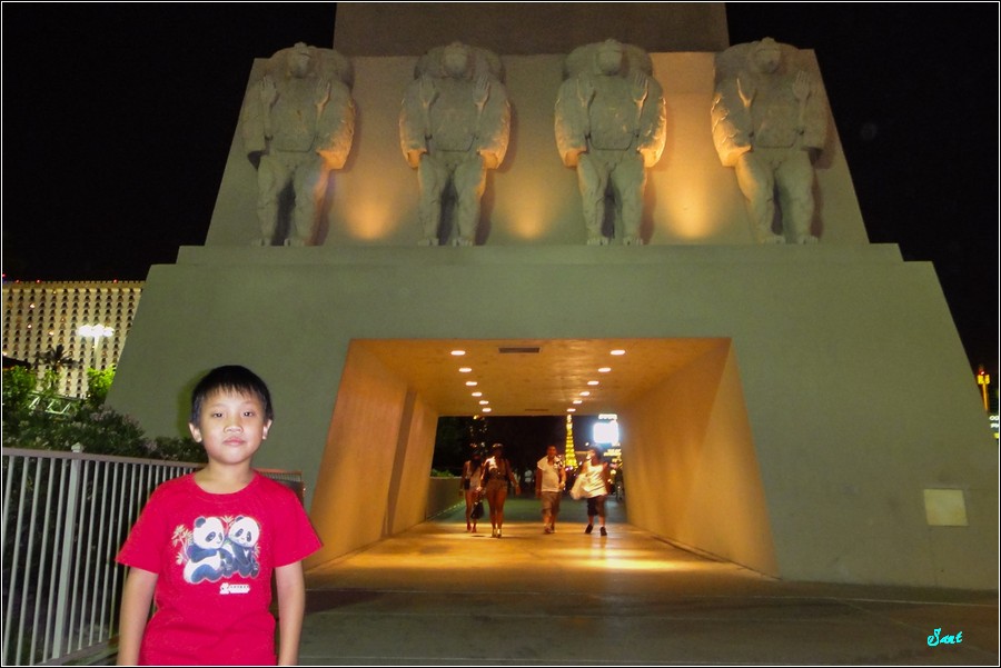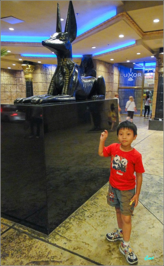 這個區塊有好幾家知名飯店,我們一路逛著走到Luxor:Las Vegas 路克索飯店,宛如走進埃及金字塔裡頭。