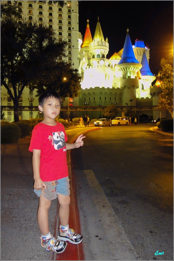 帶小狼穿越高速公路地下人行道,就是知名的Excalibur 石中劍飯店,地下一樓是遊樂場。