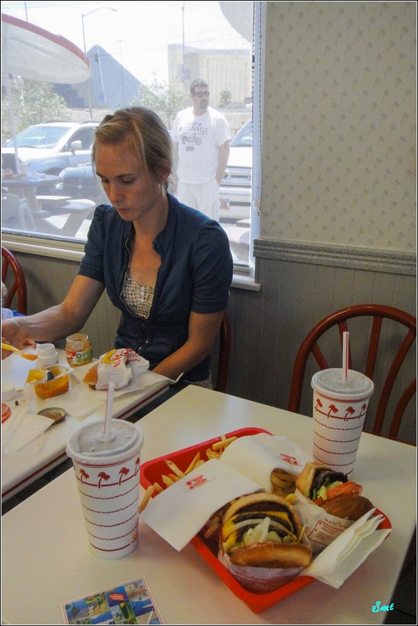 二隻狼來到美西的第一晚,洛杉磯的民宿老闆娘推薦有機會可以嚐看看「IN-N-OUT漢堡」,她說比麥當勞好吃,Wild wild west motel剛好附近就有IN-N-OUT,當然不可錯失良機,中午就優先到IN-N-OUT嚐鮮。