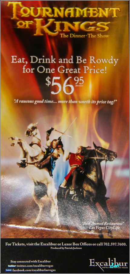 回到Wild wild west motel在櫃臺看到Excalibur石中劍酒店的中古騎士表演廣告單,唉呀,我們在石中劍酒店錯過了這個在旅遊節目看過的騎士表演。
