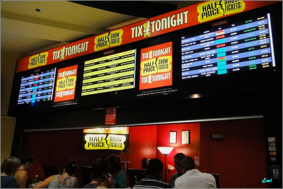 看板上跳動的知名的表演秀通通客滿,沒輒!