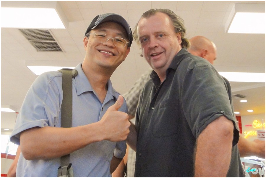 長的很像Jack Nicholson 傑克‧尼克遜的老美遞了一張名片給老狼,還要老狼跟他合照,不用錢,他說別人跟他合照是要收費的,說有空可以去找他,問我身上有沒有相片,他免費幫老狼簽名。