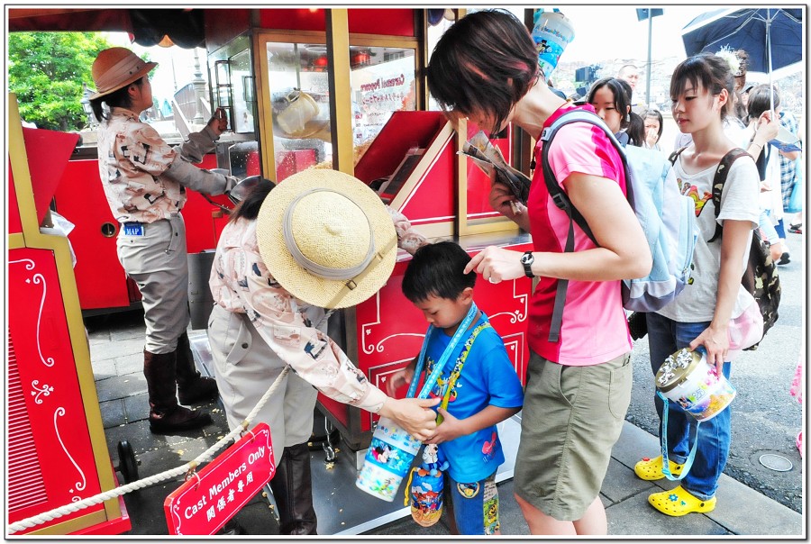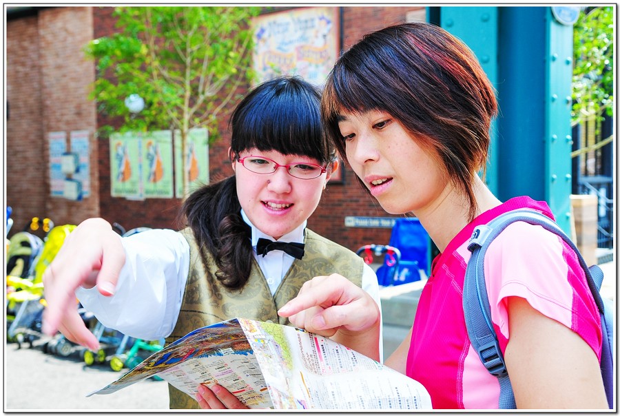 一位女工作人員在人群中吆喝,聽不懂她在說什麼,看日本遊客們都沒有付錢可以拿日本妹手上的彩色地圖,我也拿一張,反正式免費的,雖然聽不懂日語,起碼可以猜的出來是海盜藏寶圖,讓遊客們依地圖上的只是進行尋寶任務,Eric很有興趣,只好陪著他展開尋寶大冒險!