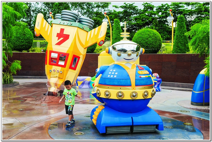 地板上有許多噴水口,如果有準備孩子們的換洗衣物,大可放心讓他們消暑一下!