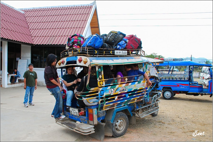 下午3點50分抵達琅勃拉邦巴士總站,必須搭乘嘟嘟車進市區。