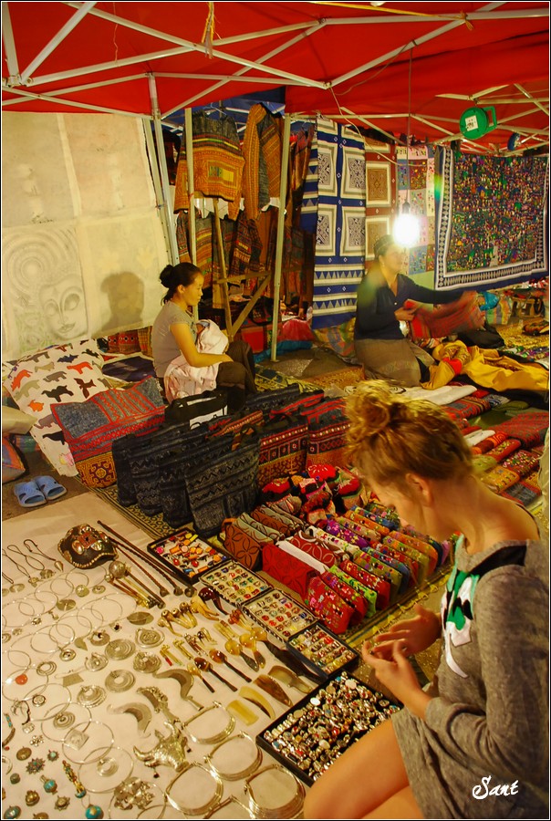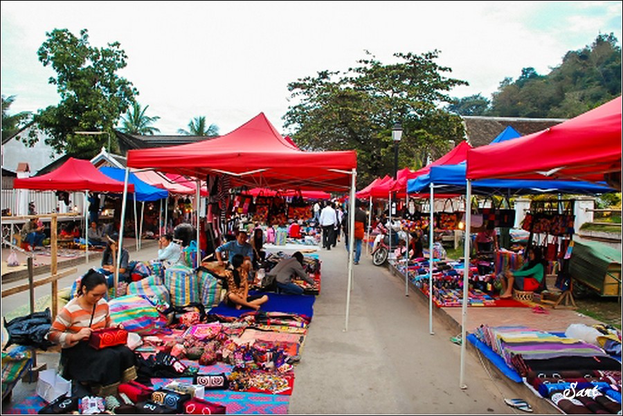 傍晚五點, Sisavangvong Road開始實施交通管制,攤販們忙著想要出售的貨品。
