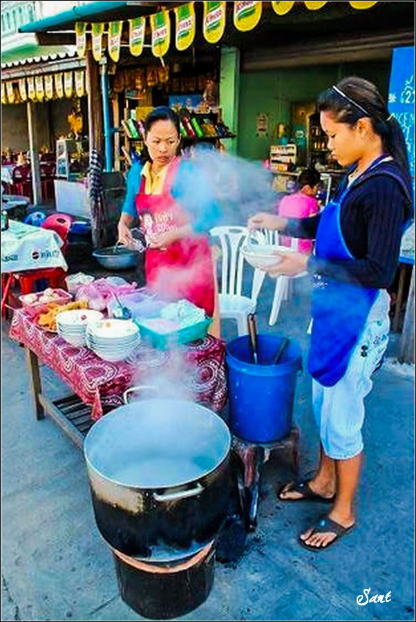 維蘇納拉特寺Wat Wisunarat一隻狼轉山而回,夜市大街已經人聲鼎沸,二位婦人做咖啡豆交易,討價還價。