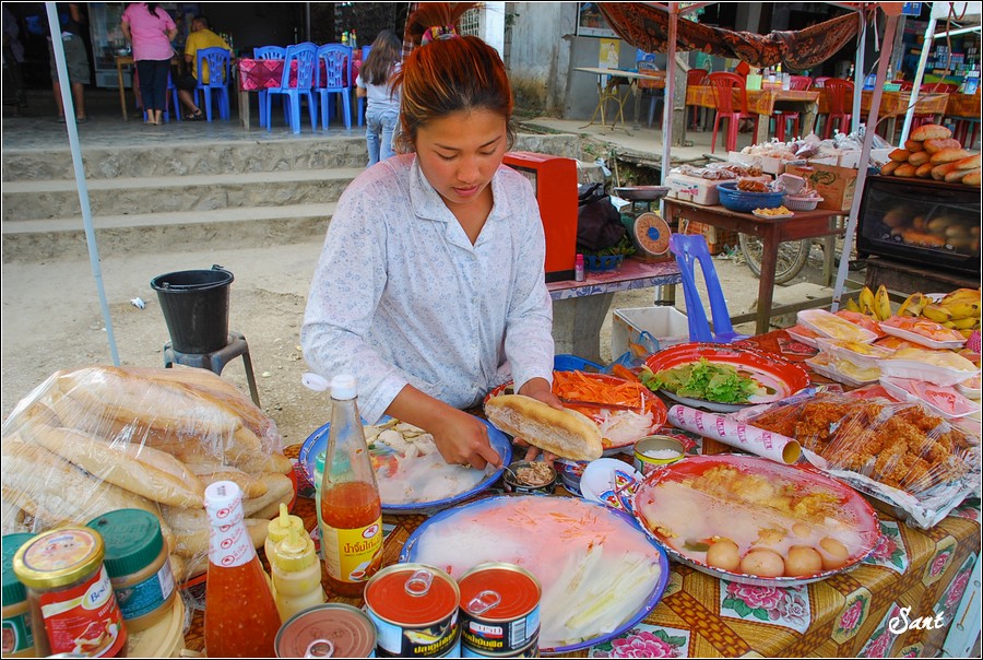 老外都很稱讚味道很好,尤其是一群穿著入時的法國人,一直說醬子吃一個人才5,000基普,真的很Amazing,難道這些老法是吃膩了法式美味,竟然對於這些粗茶淡飯會驚為美食。