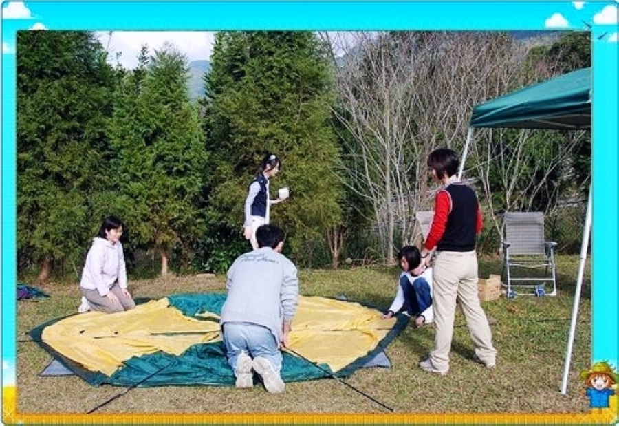 難得的冬陽曬的大家暖呼呼的,今天是我們入新家的好日子,『聖誕紅』帳棚要開包了!