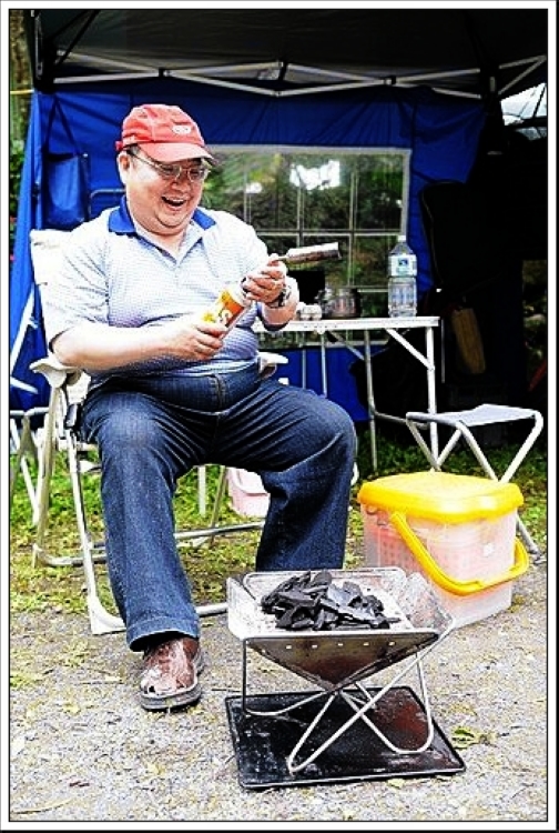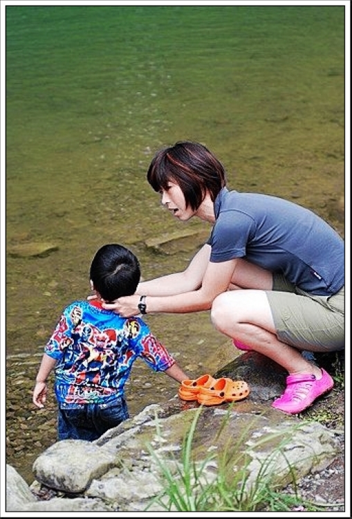 夜景拍著拍著,喝了一杯LEO泡的茶,嗯,好久沒有在露營地喝到這麼好滋味的茶,看『LEO』準備齊全的泡茶裝備,也是一位愛茶的人,於是乎茶話一開鑼就聊個沒完。 金瓜寮溪水看起來清澈,這段灣流處可深不見底喔,Eric看到小哥哥在玩水,吵小紅帽陪他玩!