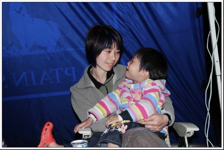 雨下的很大,Eric沒地方跑,只好窩在媽咪身上撒嬌,