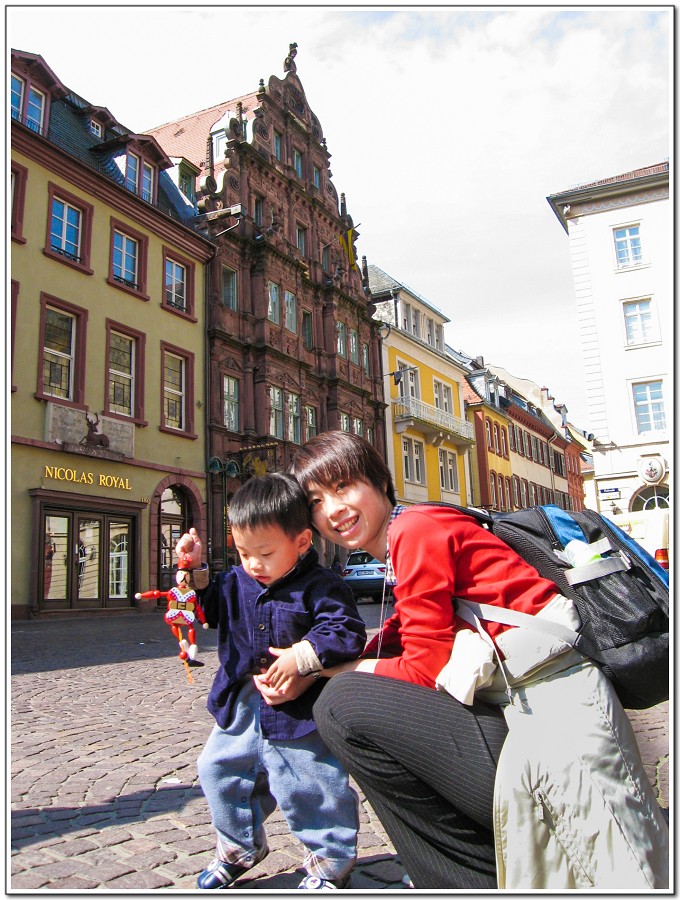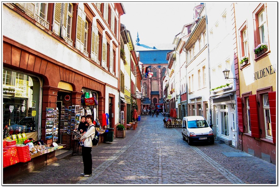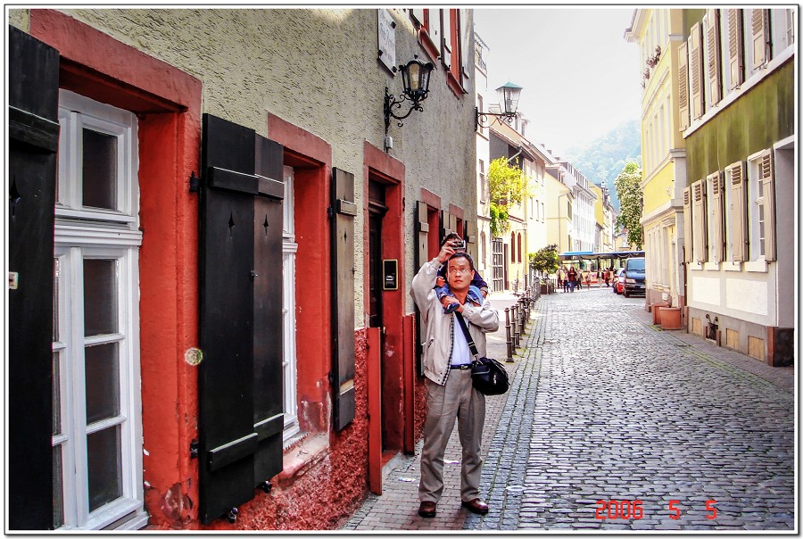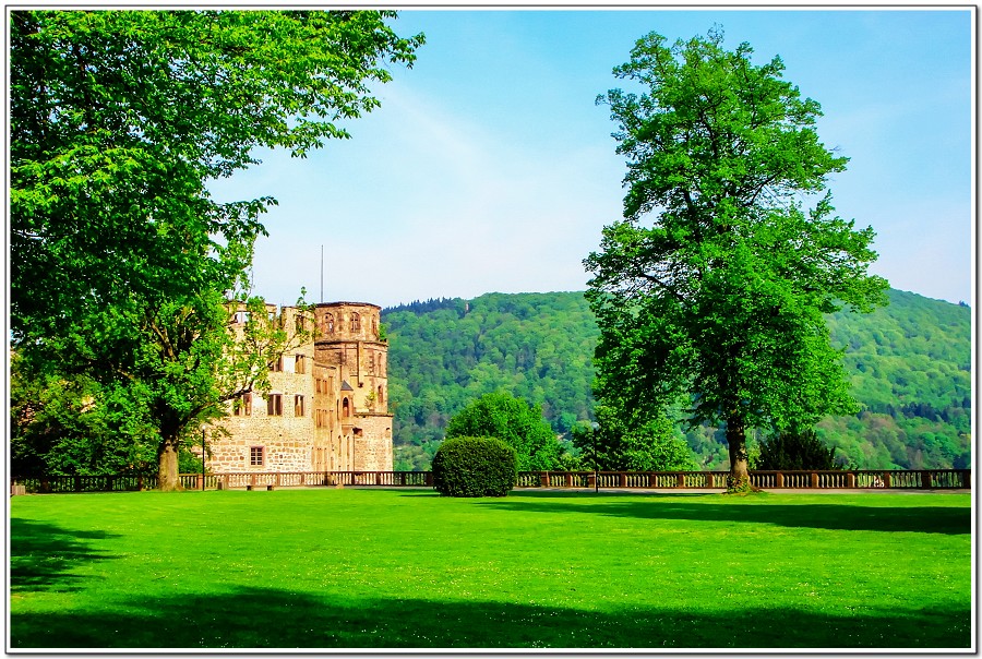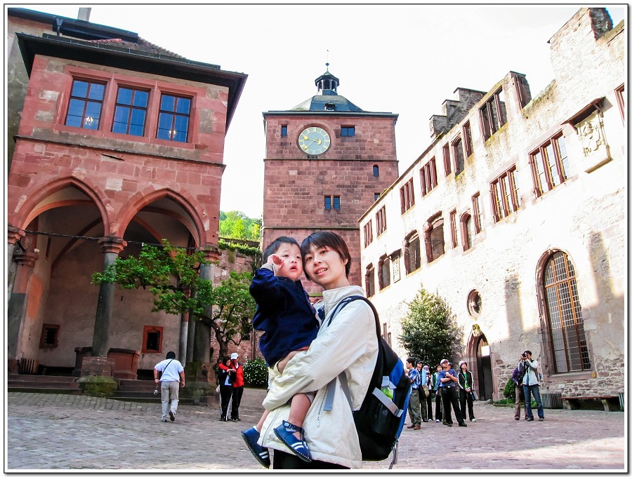 首先參觀矗立在山坡上的古堡,古堡因雷擊毀損嚴重,列入古蹟保存,由斷岩殘壁中可看出建造古堡的磚牆非常厚實,在山坡上可眺望秀麗的內卡耳河風光,河邊的紅瓦城區通通是屬於海德堡大學的校園。