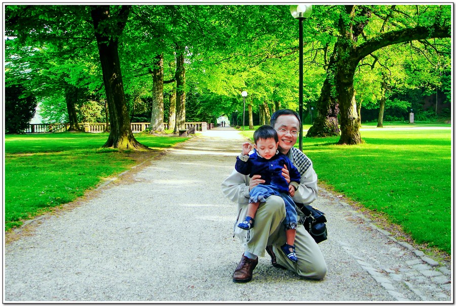 媽咪非常喜愛這片綠草皮,特地打了一張父子倆在草皮的身影!