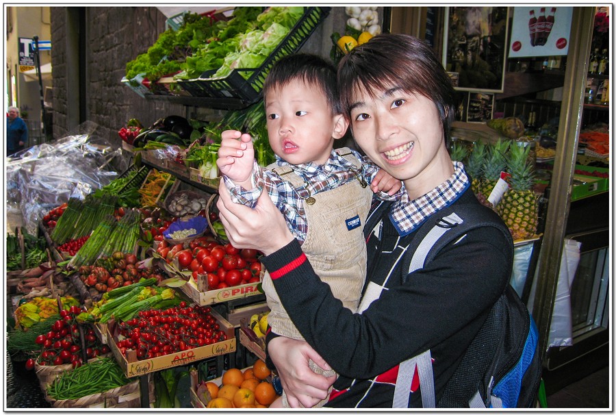 帶他在周圍照相,有一對義大利老夫妻,對一直比手劃腳、快樂唱歌的東方小毛猴很好奇,問我們Eric多大了,媽咪幫他翻譯,Eric回答說:「我一歲半了。」媽咪幫忙回答老外說兒子已經滿20個月,他們很驚訝地說他們小外孫已經快3歲還不大會說話,他們覺得Eric會唱很多歌,他們雖然聽不懂,但是旋律、音調都很正確感到開心有趣,媽咪還要現寶,叫Eric唱英文生日快樂,讓老夫妻樂的開懷大笑,拍手叫好。Eric耍完寶吵著說要吃冰淇淋,於是在洗禮堂左邊找到一家冰淇淋店「Black Bar」,給他獎勵。
