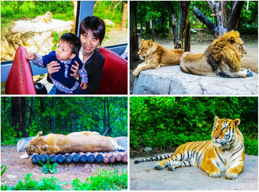 接著到號稱世界第七大的『愛寶樂園』,導遊先帶我們搭遊園車參觀野生動物園裡頭的「獅虎」,這是獅子與老虎交配所生,號稱全世界只有這一隻。