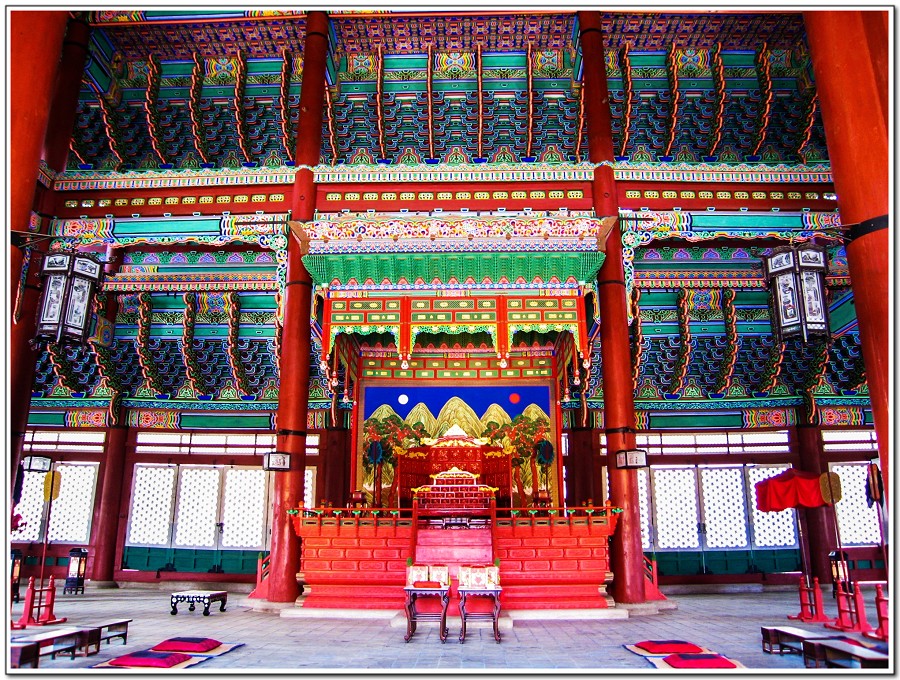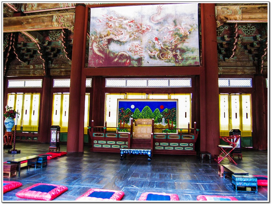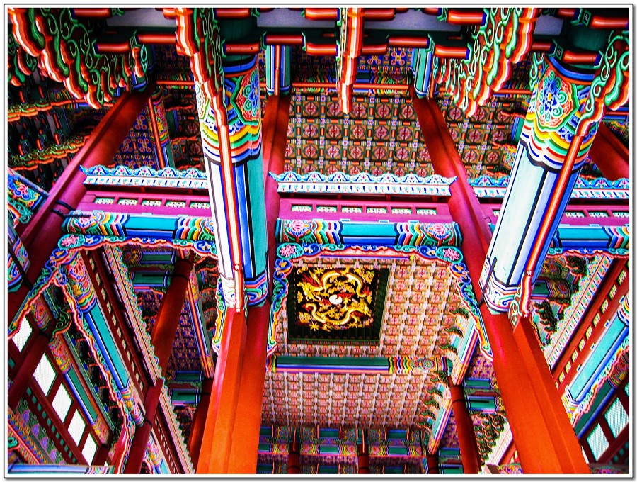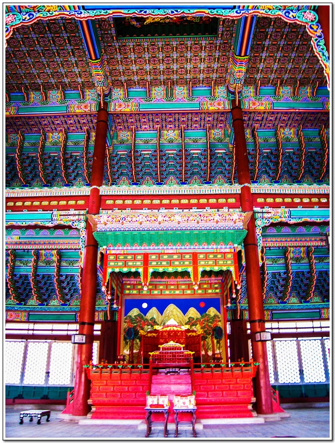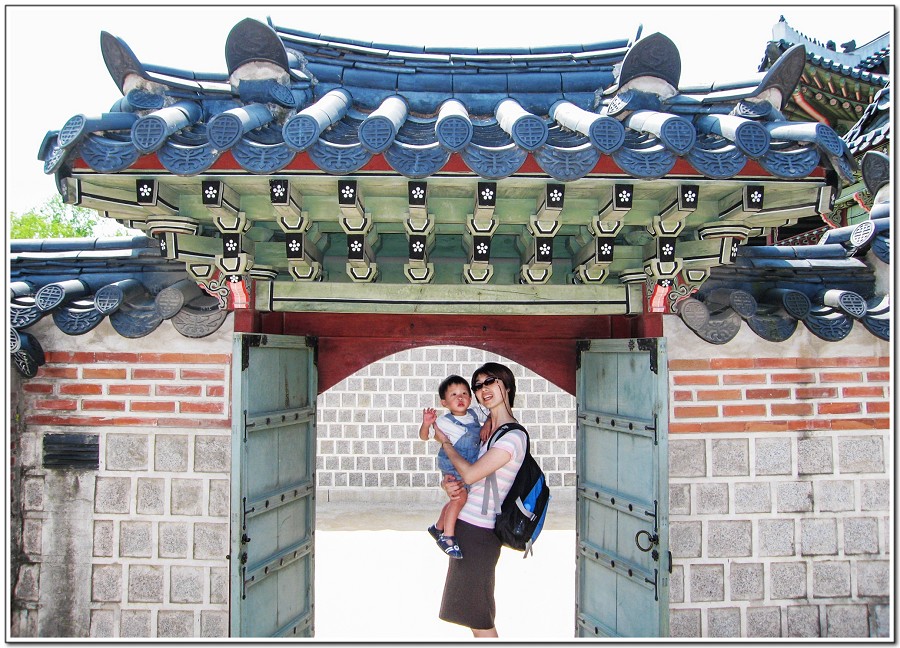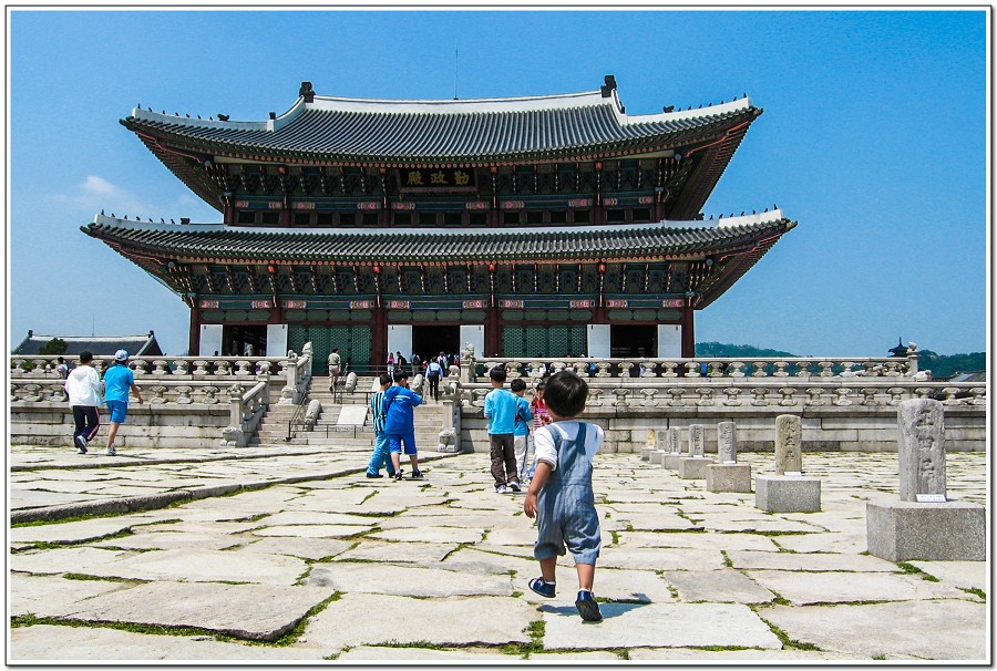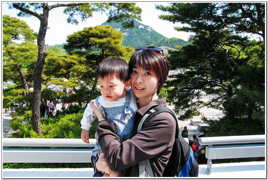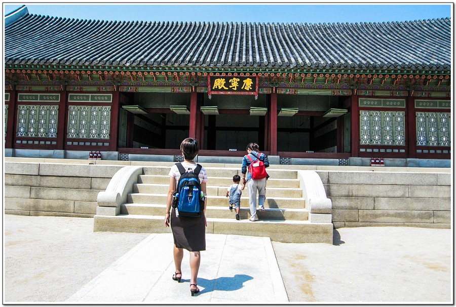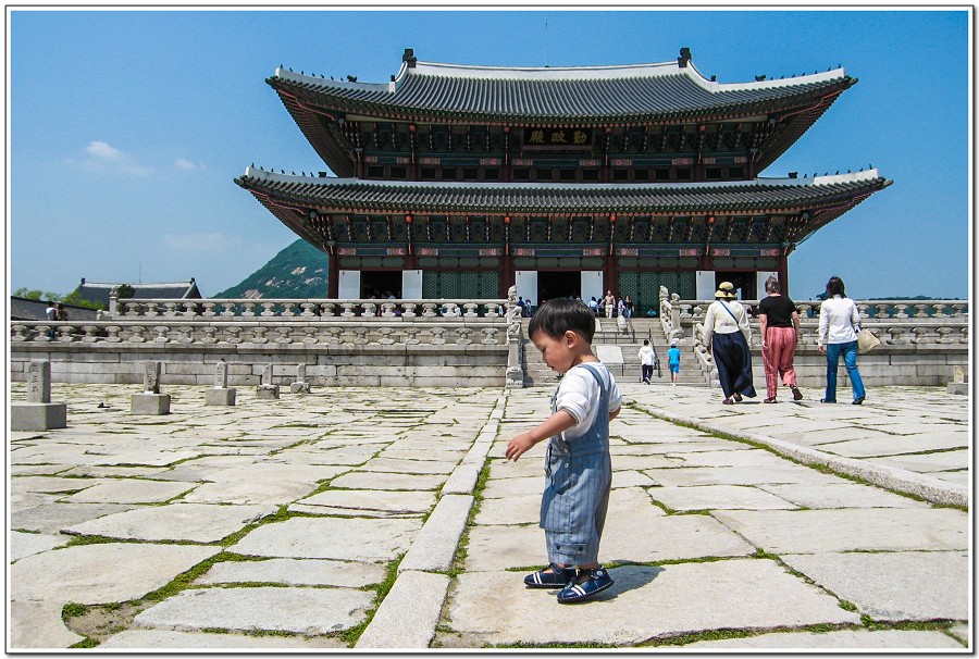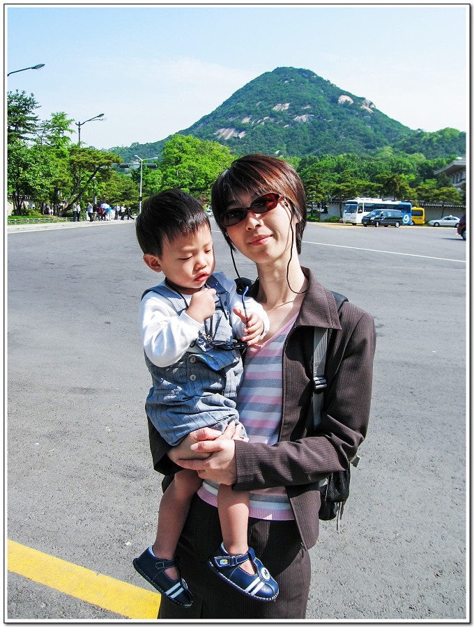 導遊說假如能與『勤政殿』屋頂上頭的金龍合照,那這個人就有皇帝命,所以韓國人用黑網將屋頂圍了一大圈,防止『真命天子』再出江湖!可是,我幫Eric和他娘成功地與金龍合照了一張,那不就表示Eric天生帝王命,將來會是一位王中之王囉!^_^