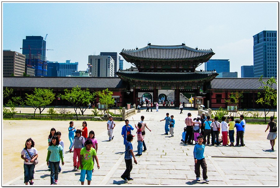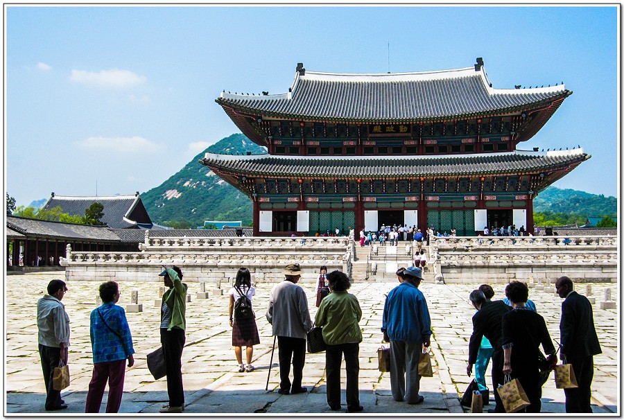 參觀明成皇后拍攝地「景福宮」,根據氣象報告今天會下雨,韓國的氣象預報跟台灣一樣兩光,結果日頭赤炎炎,好熱啊!@@