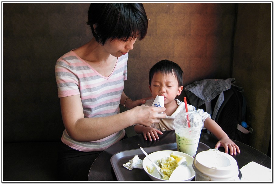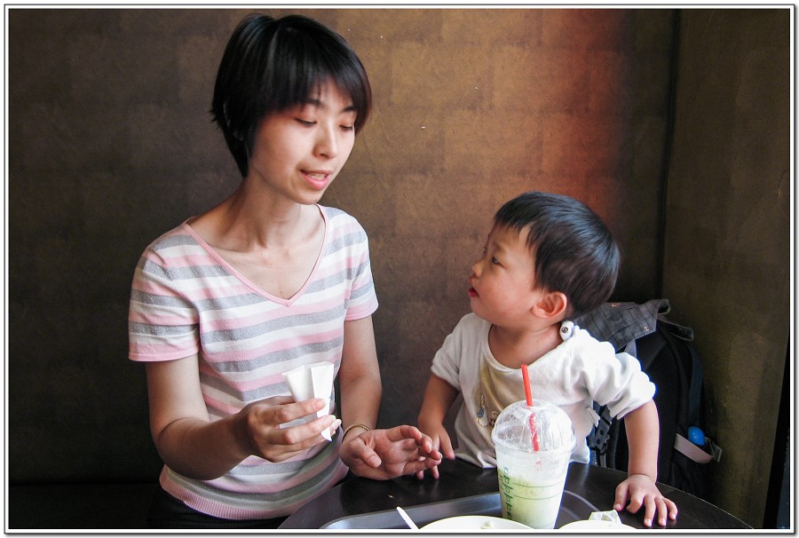媽咪不想逛,找了一家咖啡店喝咖啡吹冷氣。