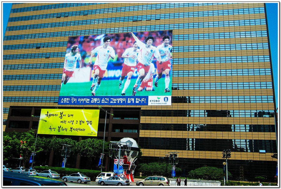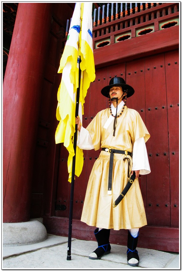 今年四月開始青瓦台附近的交警改穿鮮豔的紅色緊身衣,頭戴安全帽,腳踩直排輪維持交通,導遊說可以跟交警、女警合照。恰巧今天剛好有貴賓,交警、女警忙著交通管制,不讓遊客拍照。導遊說,有時沒狀況,剛好又觀光客少時,那些酷交警們還會主動找漂亮小姐拍照、虧妹妹哩。