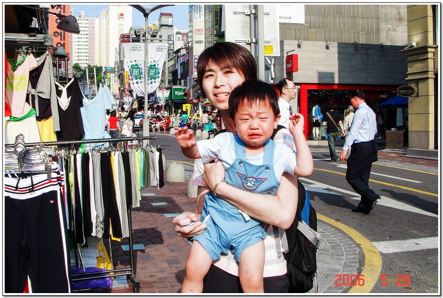 媽咪說導遊一直逼我們買人參,很不爽,乾脆不要買,我想好歹人家也有幫我們陪了幾天兒子,買個10張,算是給他們的小費吧,於是挑10張,付了50美金,隨車小弟說不對,一張6.5美金總共是65美金,媽咪說台灣的旅行社有說1張5美金啊,導遊問我們有證明嗎,Eric媽咪翻出行程表,裡頭真的有註明5美金,導遊說那是去年底的行情,今年韓幣升值,台幣跟美金貶值,換算現在的匯率應該是6.5美金,導遊優待我們10張1800台幣,或55美金,這是什麼跟什麼,氣呼呼的媽咪還是花了55美金買了10張,等回台灣再跟旅行社吵,別再打壞這幾天的遊興。