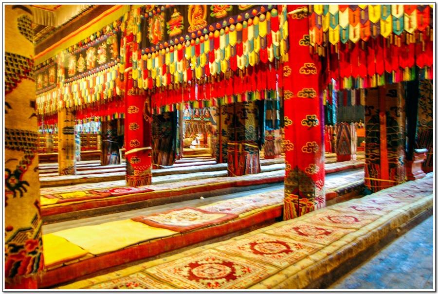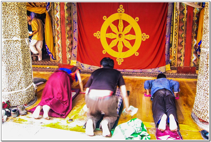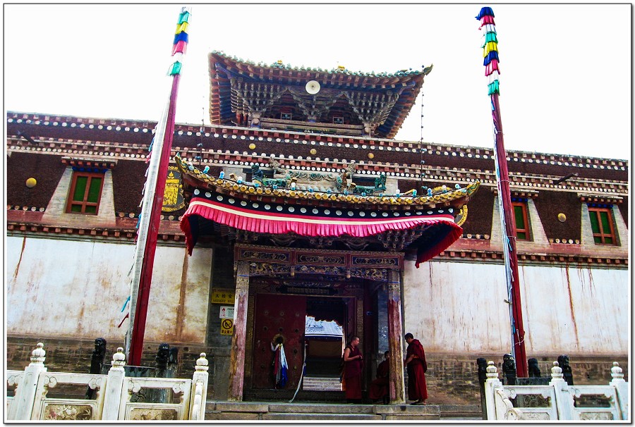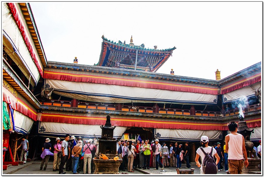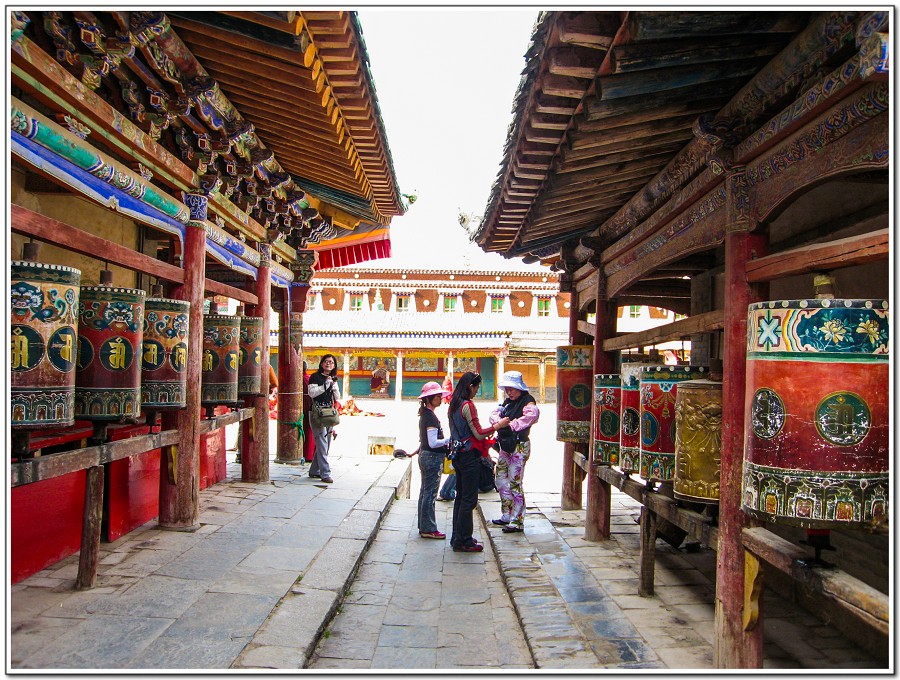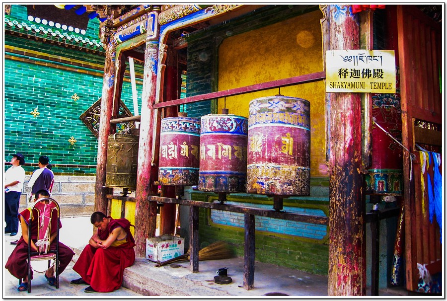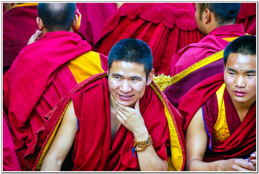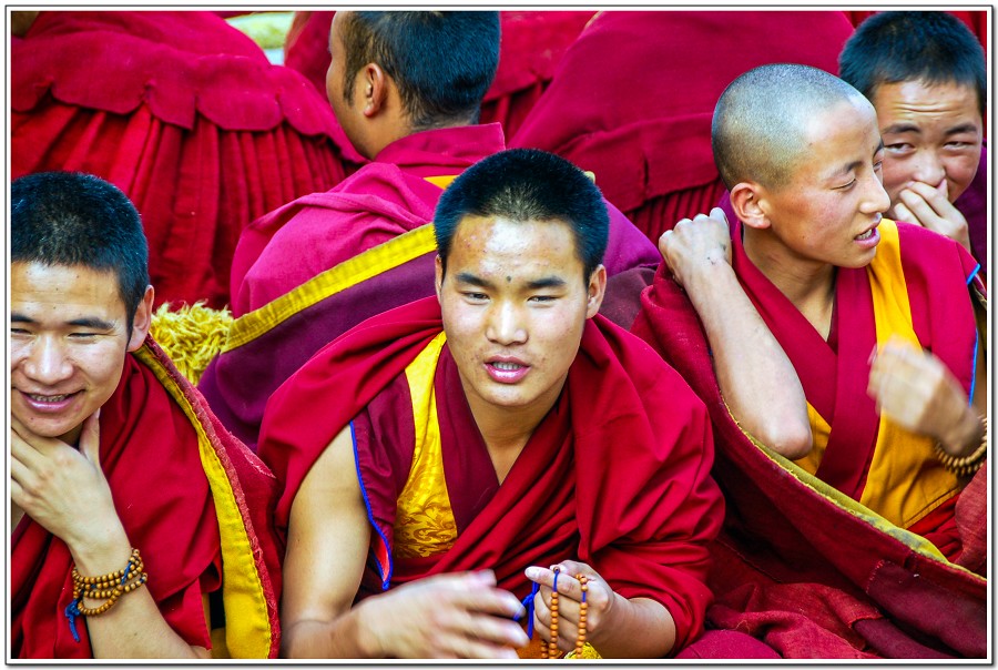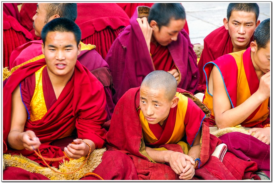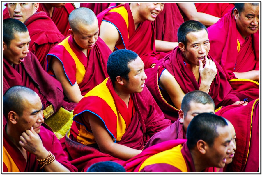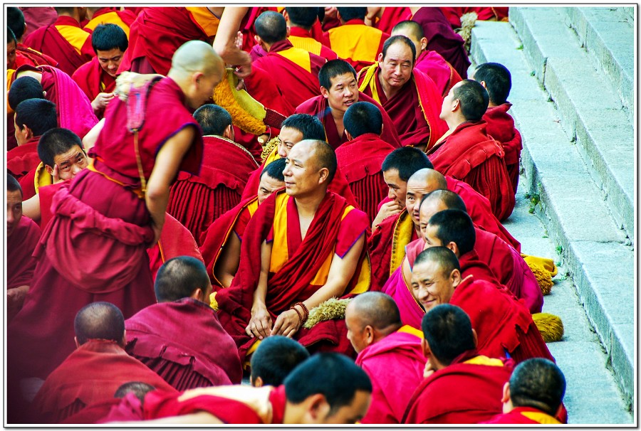 廣場上的喇嘛正在進行『辯經』,類似學校的考試,坐著是主考官,學生滔滔不絕,不時以手擊掌,因為人數眾多,整個廣場轟轟然,煞是熱鬧有趣!