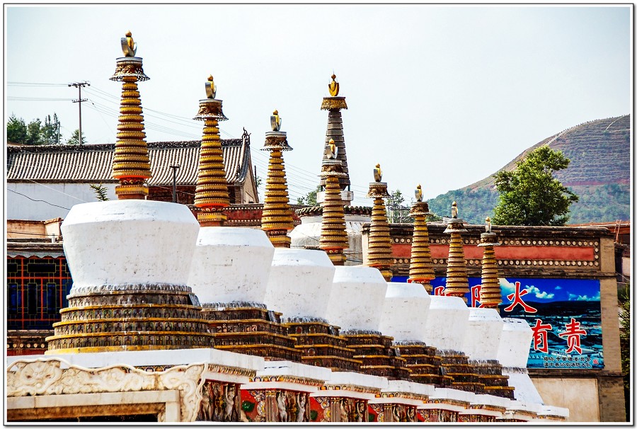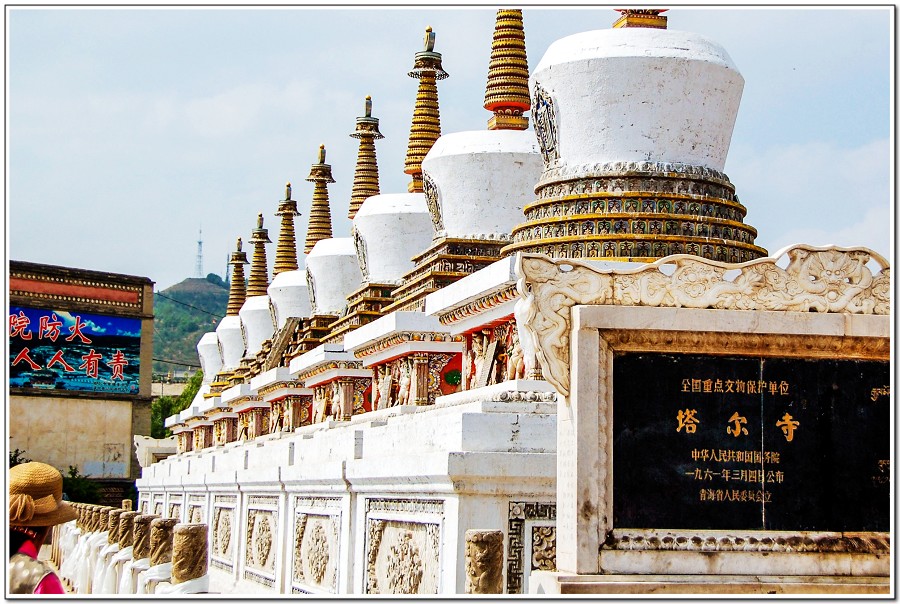 『塔爾寺』藏語稱為「袞本賢巴林」,意思是「十萬獅子吼佛像的彌勒寺」,其中以八個塔、大金瓦殿、小金瓦寺、花寺、大經堂、九間殿等最為著名。
