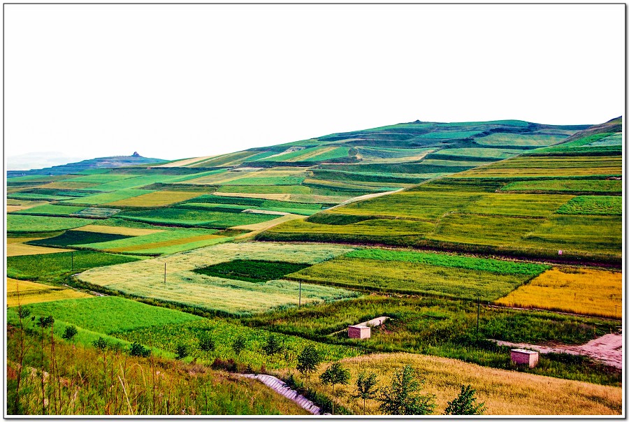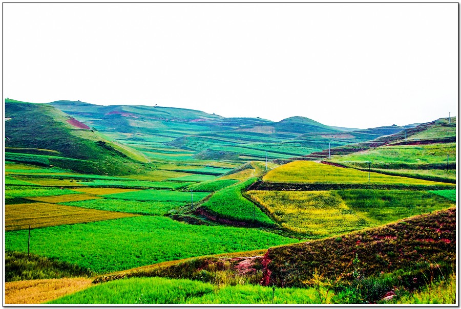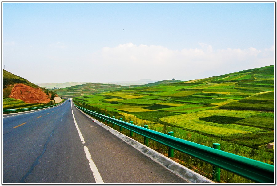車窗外開始看到青棵田和麥田交錯漂亮景致!
