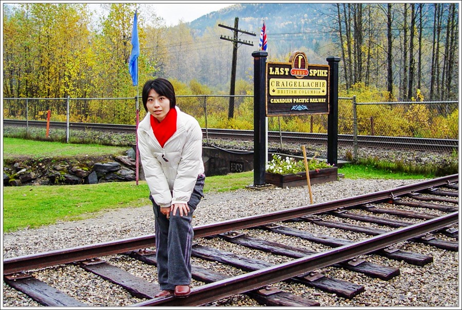 而群山壁立的鷹峽道,是太平洋鐵路最後一根道釘敲下的地方。這根釘子是由太平洋鐵路公司的史蒂夫先生在1885年11月7號釘下,因爲這條鐵路當時由東部向西部蓋,由西部向東部蓋,剛好它的交駁點就在這最後一根釘的位置。