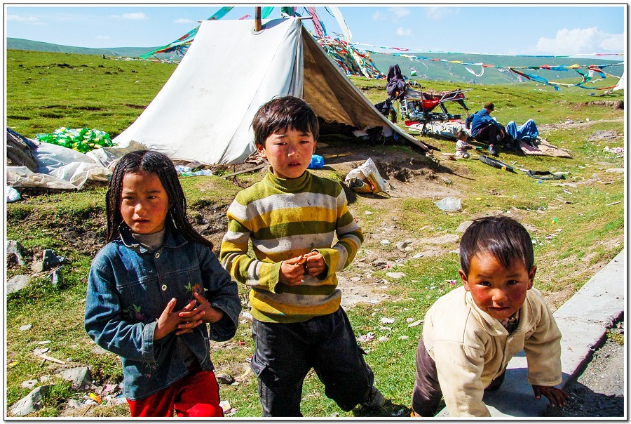 不是經過的遊客都會停下來所以朋友很少看到遊客 ,對我們很好奇,團上有些女生馬上回車上拿糖果、餅乾請她們,但是地陪小辛私下說醬子不大好,因為糖果&餅乾容易造成蛀牙,這裡的生活條件不好,小朋友沒有牙刷、牙膏,如果有蛀牙很麻煩,因為這裡沒有牙科診所!@@