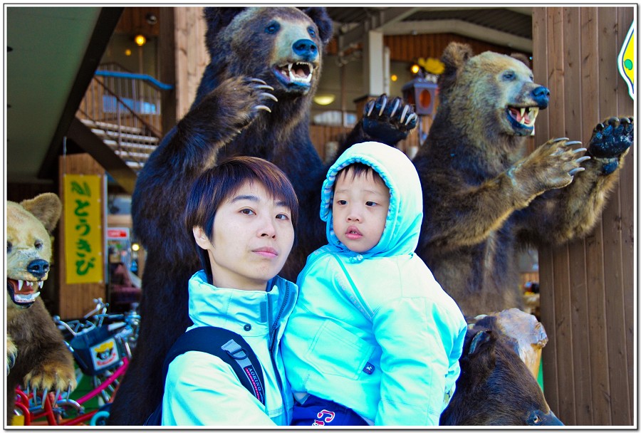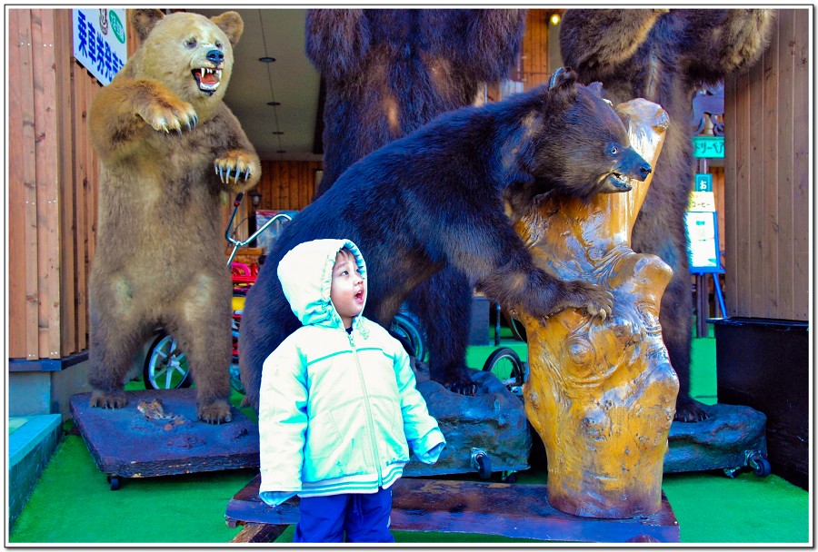 北海道街道、商店處處可看到大黑熊的標本~灰熊多!