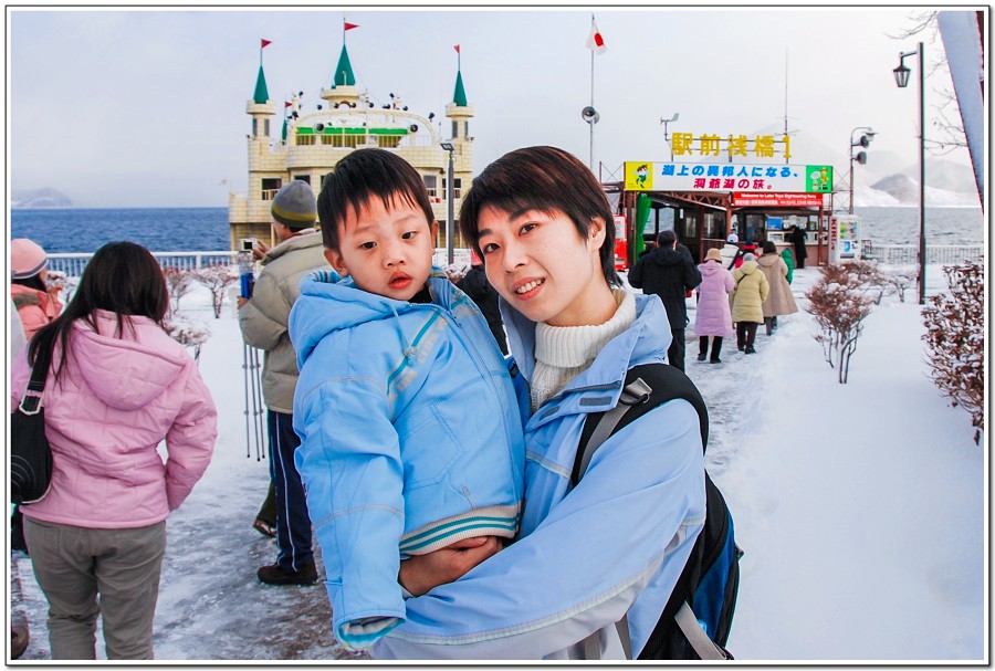 搭纜車上「函館山」欣賞百萬夜景,媽咪抱著Eric剛好面對著涵館港,有一位日本歐巴桑一直往他們母子邊鑽,把母子倆擠了出來,我火大把她給抓了出來,歐巴桑哇哇叫,我跟她指著Eric母子倆搖搖手,歐巴桑的同儕看了都不敢出聲。日本不是號稱守法有禮貌的國家嗎,怎麼可以對著抱著小娃娃的女子粗暴的硬擠呢!