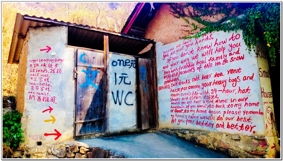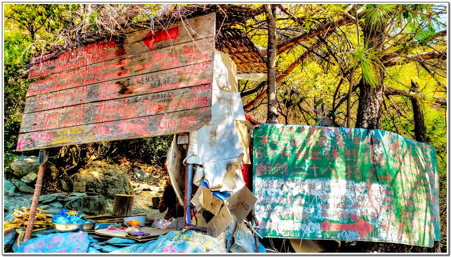 虎跳峽健行路線圖標示登山口到客棧只需5小時,老狼剛才騎了一段馬,已經花了6個鐘頭,從這到茶馬客棧還要一個鐘頭,老狼真的是肉腳!@@