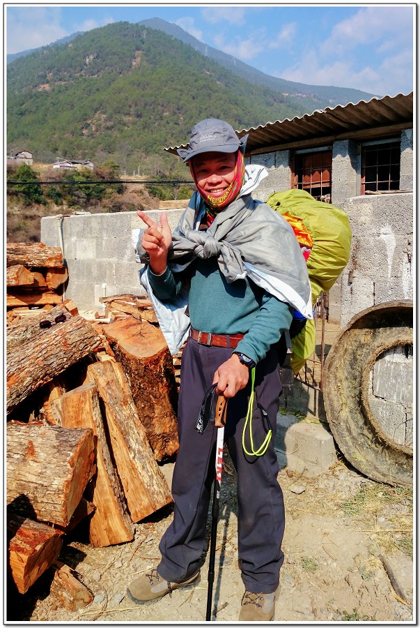 登山高手Kevin指導老狼如此打扮,忘了帶魔術頭巾,是昨天特地在麗江找了老半天才找到的,一來保暖二來防曬,順便敗了一個背包套,據說在雨崩鐵定用得到。手上這支LEKI登山杖是出發前在王子登山用品社特地敗入,結果在結束虎跳峽時落在虎跳峽往香格里拉的小巴上頭,Kevin幫老狼聯絡到車主,車主將登山杖托運客運大巴的司機帶到麗江,失而復得,算是此行的幸運之一,也瞭解到每個國家都一樣大部分都是好人、熱心的人比較多,大陸人也很富人情味!