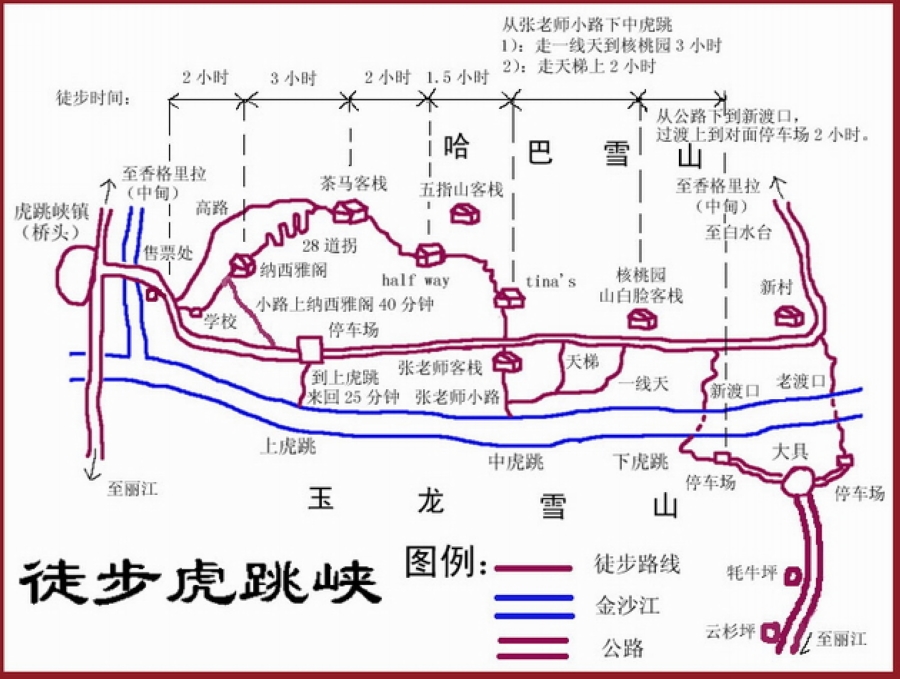 Kevin給老狼的虎跳峽徒步路線圖一時不知塞於何處,於是從網路抓來的二張徒步路線圖給有興趣的冰友們當參考!^_^