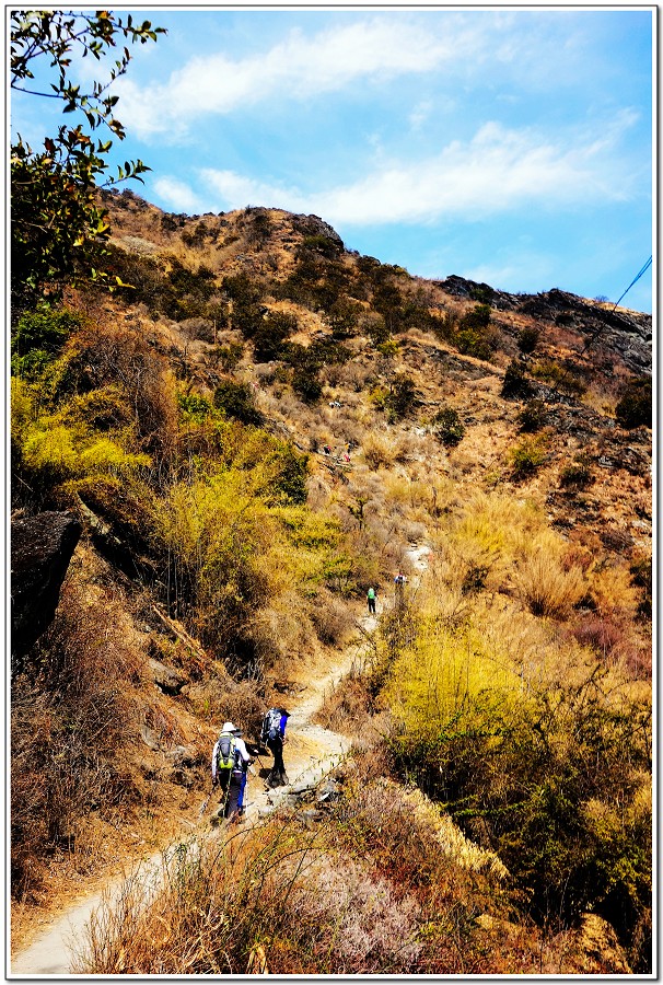 雲南的三月天涼爽宜人,但是老狼今天兩管鼻水流個不停,因為都跟在Kevin和Vivian的後腳跟,揚起的泥灰讓鼻子嚴重過敏,也沒體力越過他們,沒輒!@@