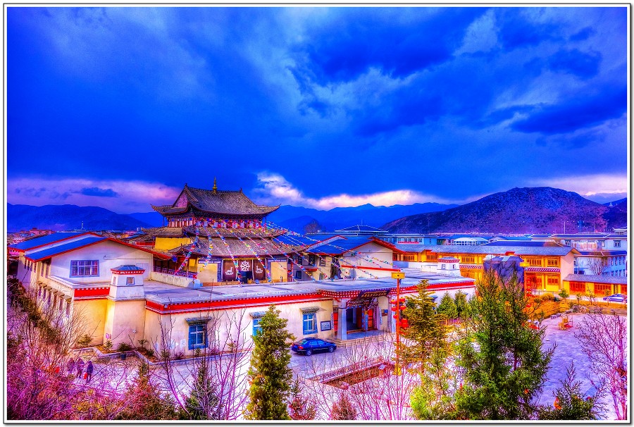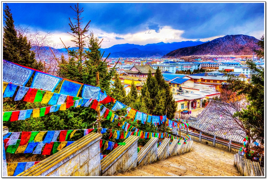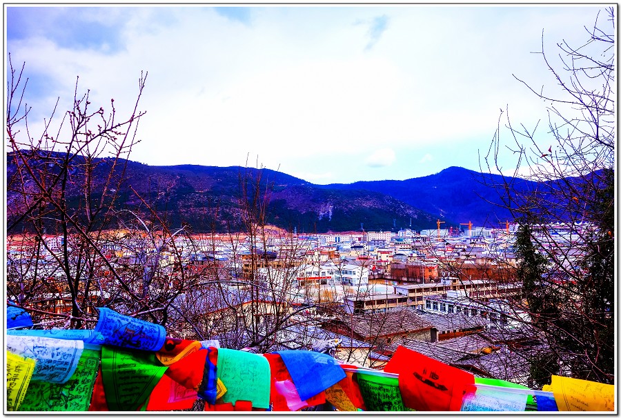 香格里拉龜山公園裡頭有一座佛寺和一座藏廟,獨克宗古城大火就這麼剛好只燒到龜山公園下緣,有神沒神一看便知!