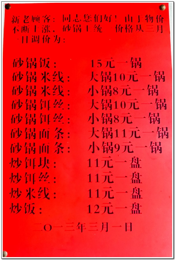 老狼點了砂鍋餌絲,一鍋才10人民幣,是進雲南之後最便宜的一餐。